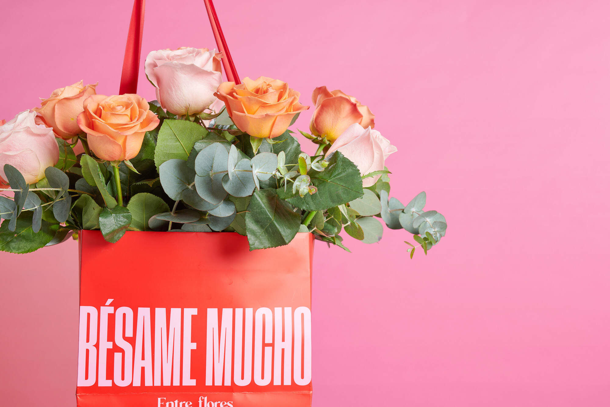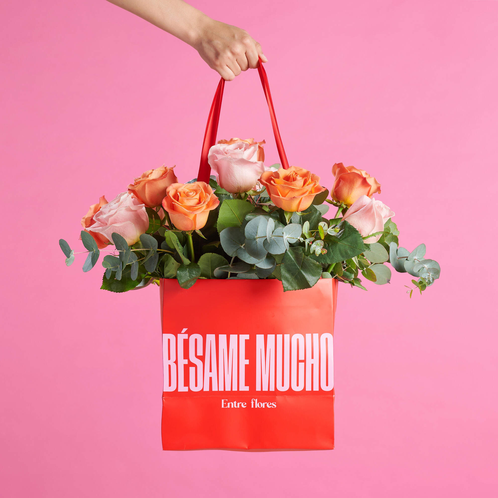 En Bésame Mucho, hemos creado una colección de ramos icónicos, preparados en nuestra icónica bolsa roja, para que solo tengas que elegir el tuyo y llevártelo con facilidad.
