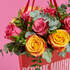Lleva contigo la energía y pasión de este ramo con la comodidad de nuestra icónica bolsa roja.