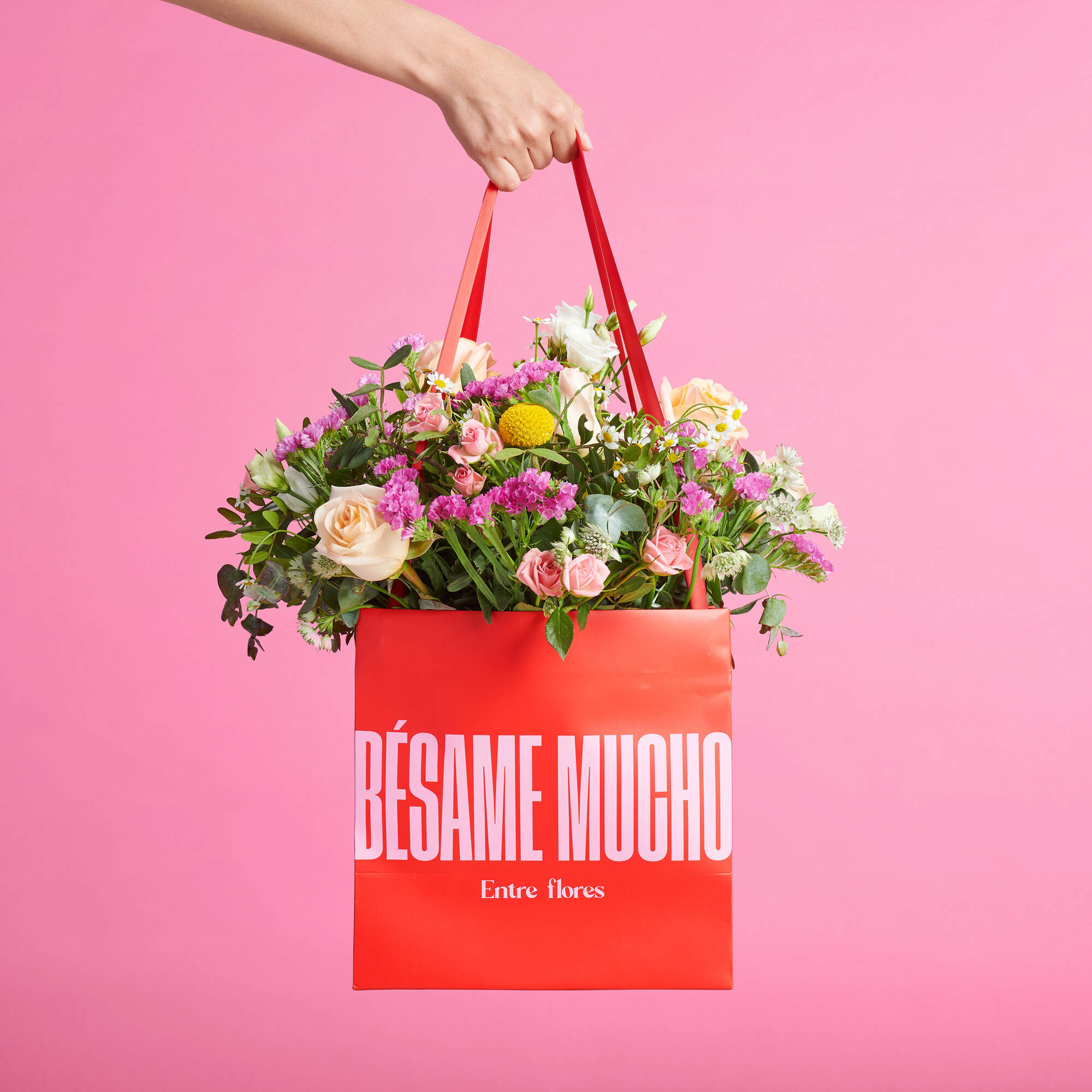 En Bésame Mucho, seleccionamos los mejores ramos de nuestra colección y los presentamos en nuestra icónica bolsa roja, para que solo tengas que elegir tu favorito y llevártelo con total comodidad.