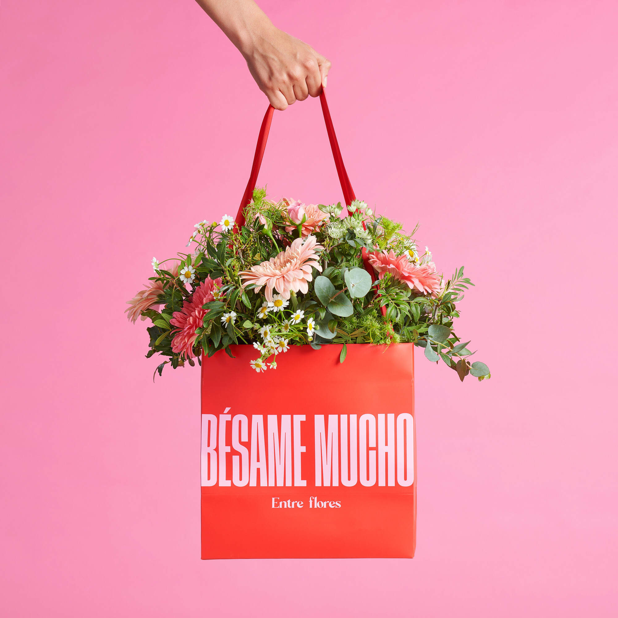 Un ramo con historia, elegancia y comodidad en nuestra icónica bolsa roja. Ahora, puedes llevarlo fácilmente en nuestra bolsa roja de Bésame Mucho, diseñada para un transporte práctico y seguro.