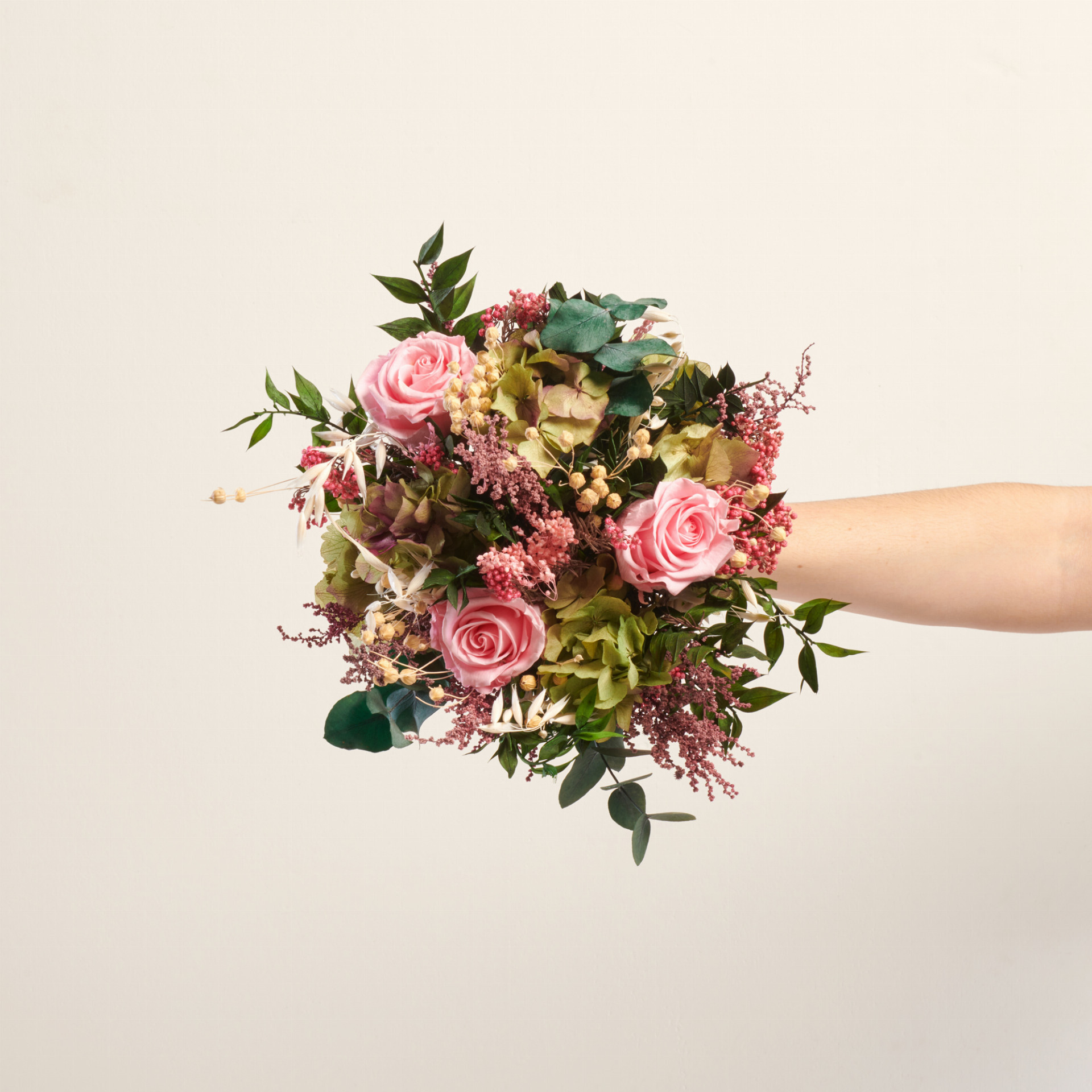 El ramo Efímero es uno de nuestros ramos de flores preservadas para novia mas delicados. Su forma perfecta, sus colores en sintonía y su selección de flor, hacen de este ejemplar una joya para cualquier Novia.