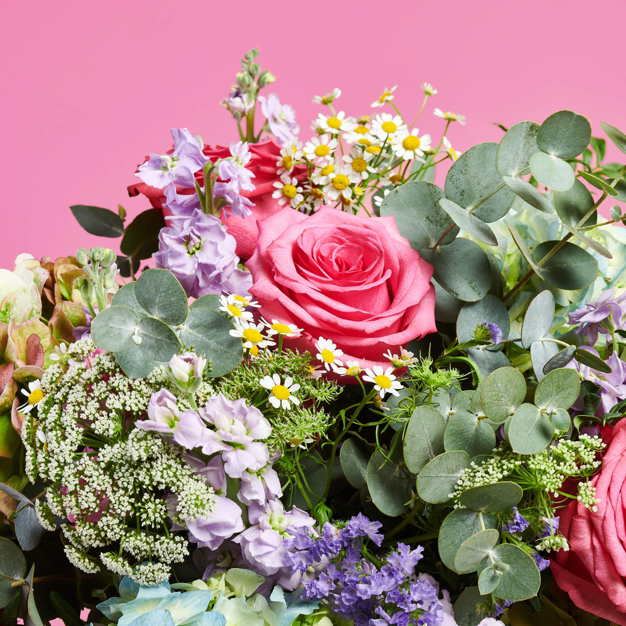Este ramo tiene una presentación muy cuidada, envuelto en nuestro papel de color rosa perfectamente protegido para que lo puedas transportar sin ninguna dificultad.