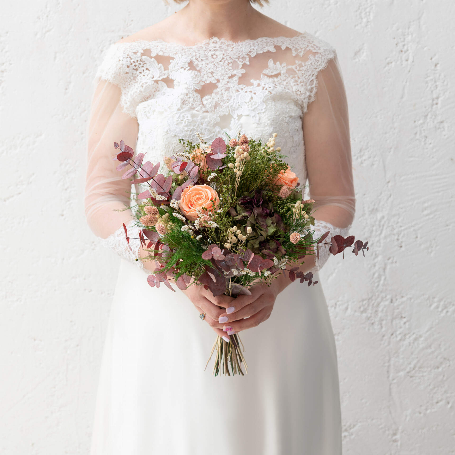 Nuestro ramo de preservado Serenidad tiene todos los elementos de un ramo de flores sereno y equilibrado, con los colores y flores más atrevidas. Rosas naranjas y hortensias se unen en un ramo ideal para esa novia clásica pero atrevida. Compra tu ramo de novia preservado en Bésame Mucho.