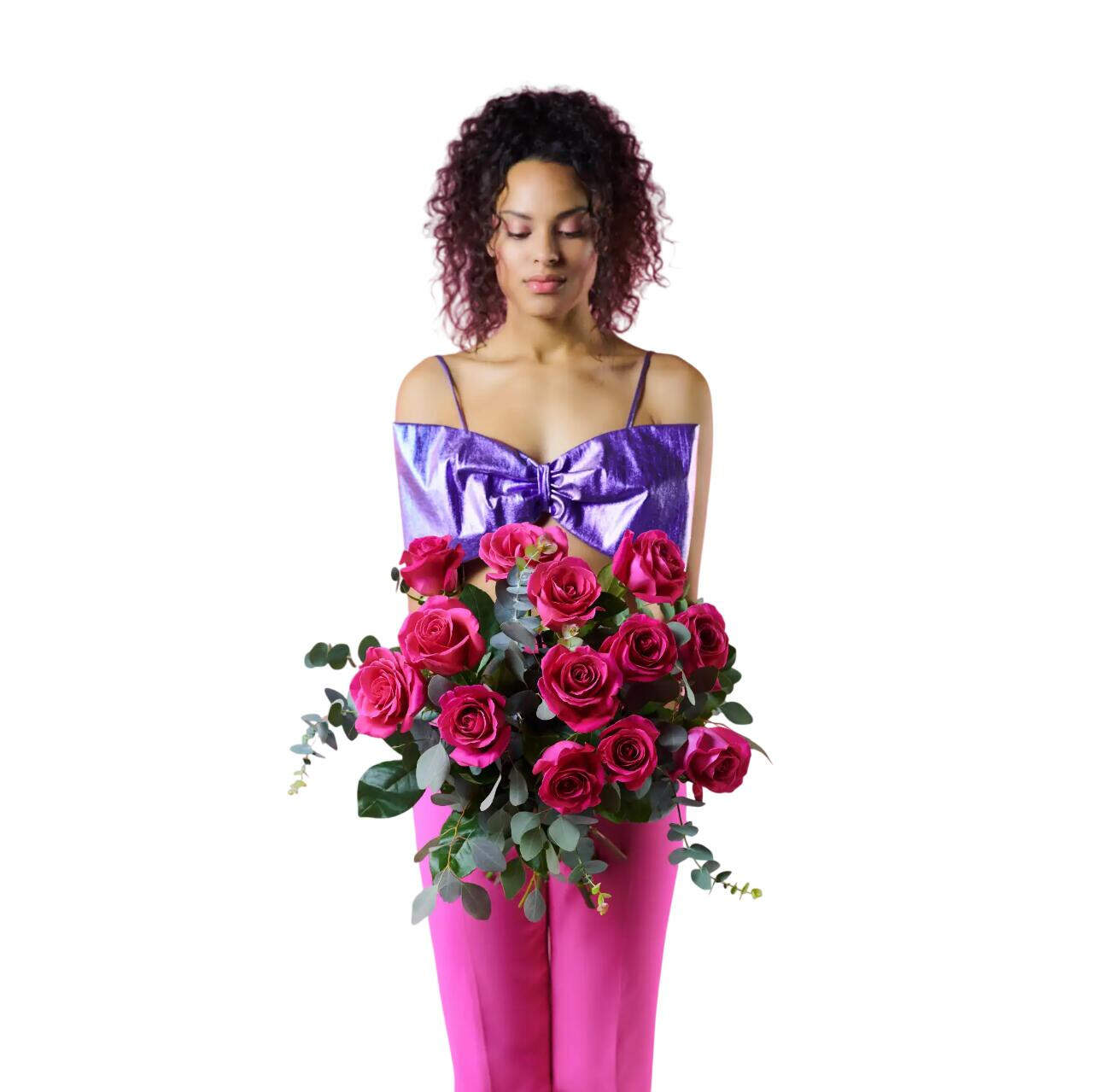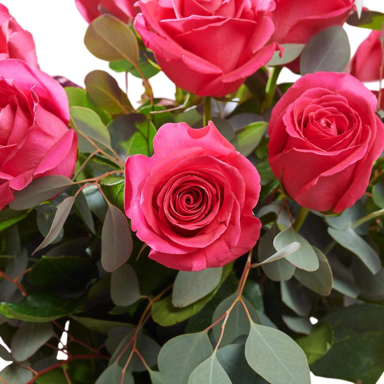 Este ramo de rosas de color Fucsia hará que sea quien sea la persona que lo reciba sienta la intensidad de tus sentimientos. Demuestra personalidad y elegancia con este ramo. Beso intenso se elabora con de las mejores rosas de color Fucsia. Cuidando y mimando hasta el ultimo detalle con nuestros verdes como eucalipto y lentisco de cultivos sostenibles.