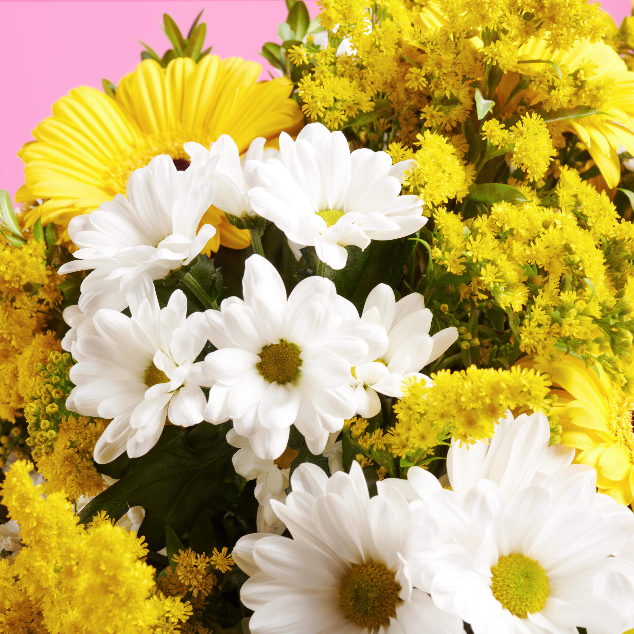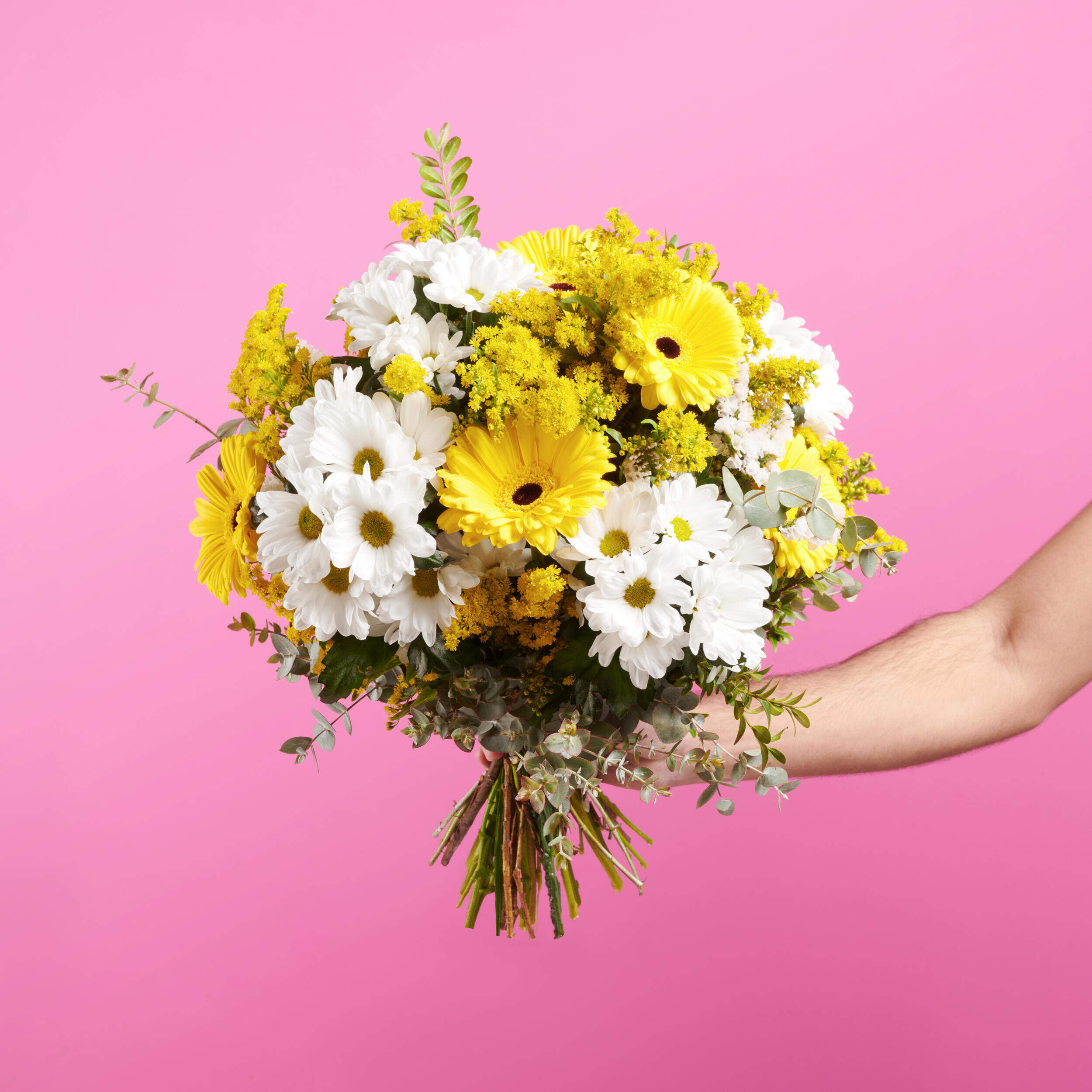 La combinación de nuestras gerberas amarillas y las margaritas blancas te dejan con la miel en los labios y te hacen sentir especial, un ramo que te encantará.