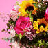 Caricias al Sol es el ramo de girasoles que hemos elaborado en nuestro taller con mucho amor, llenará tu casa de flores y creará un ambiente único y especial, como si de un millón de caricias se tratara. Para ello hemos seleccionado las siguientes flores principales: girasoles, rosas fucsias y gerberas rosas. Una combinación súper dulce.