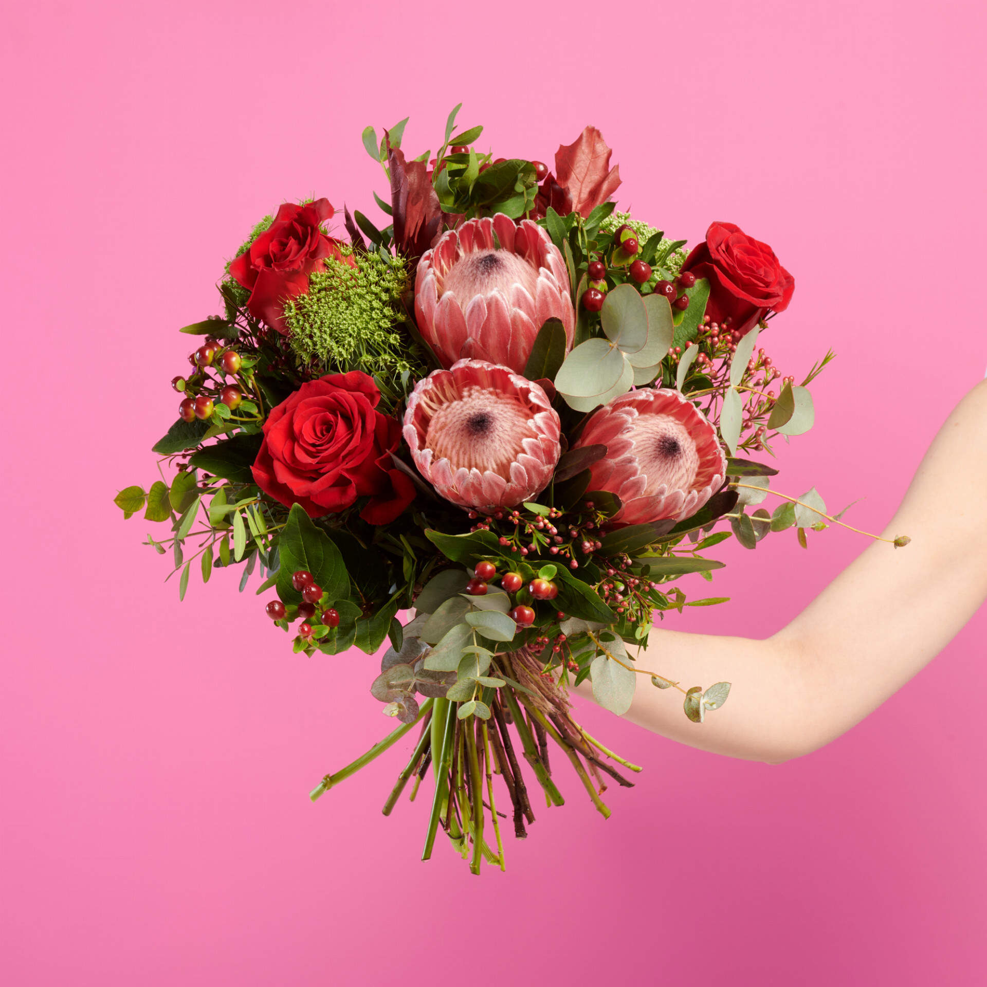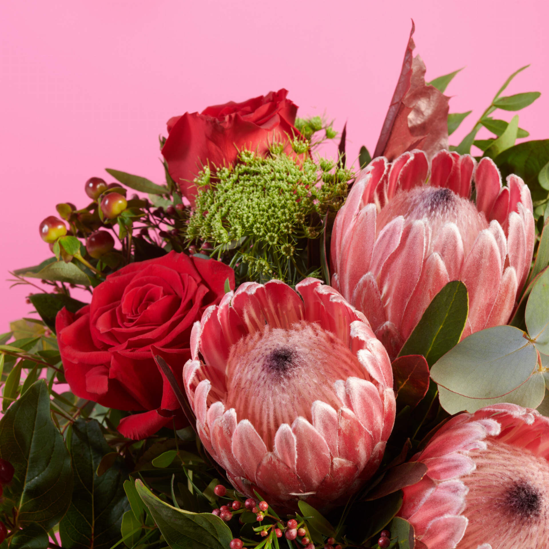 Ramo de proteas y rosas rojas Rey del Amazonas