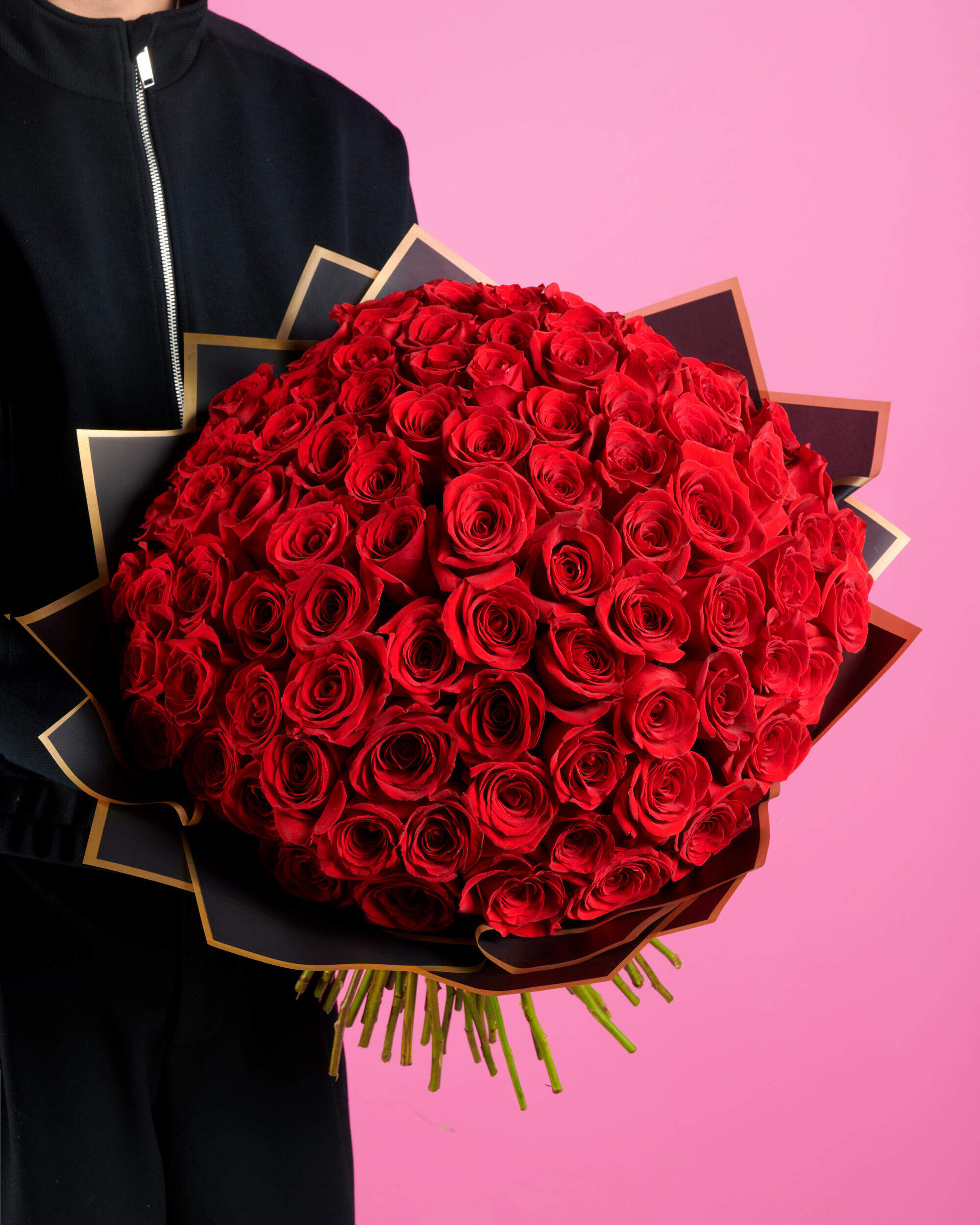 La joya de la corona, nuestro ramo de rosas rojas mas icónico y vendido, dile con flores todo lo que sientes a esa persona especial.